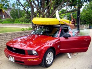 De cum am aterizat, dupa zborul de 20 de minute din Oahu, am mers direct la centrul de inchirieri masini. Pentru ca aparuse o eroare de sistem si pentru ca nu mai aveau deloc masini din categoria aleasa de mine, m-am “pricopsit” cu un Mustang rosu.