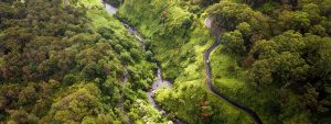 Cea mai pitoreasca calatorie in Maui si, chiar din intreg Hawaii, o poti face pe drumul spre Hana. Lung de 65 de mile, avand 617 curbe si 26 de podulete cu un singur sens, se incadreaza clar in “a must do and see”. De o frumusete greu de egalat, strazile sunt uneori atat de inguste,  incat abia treci peste un pod cat o fideluta, peste un parau sau o cascada ce iti slobozeste wow-uri dupa wow-uri. Pe o parte e natura, verde, tresarind de viata, pe cealalta parte e coasta, care te imbie la o baie in ocean. Apoi urmeaza serpentine, si mai multa natura vibranta, plante ca in Jurassic Park, cascade turcoaz, poduri in miniatura, suspendate. Oh, ce balsam pentru spirit si ce aventura pentru privire!