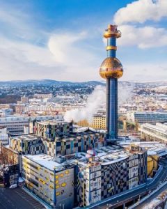 Staţia de ardere de deşeuri Spittelauer (Müllverbrennungsanlage) a fost cu mare dezaprob acceptată. Însă, a devenit de-a dreptul faimoasă după ce, în 1987, renumitul arhitect austriac Hundertwasser a creat un model original pentru faţada sa, care se evidențiază la orizontul Vienei cu al său imens turn cu bilă aurie, pe unde iese fumul.